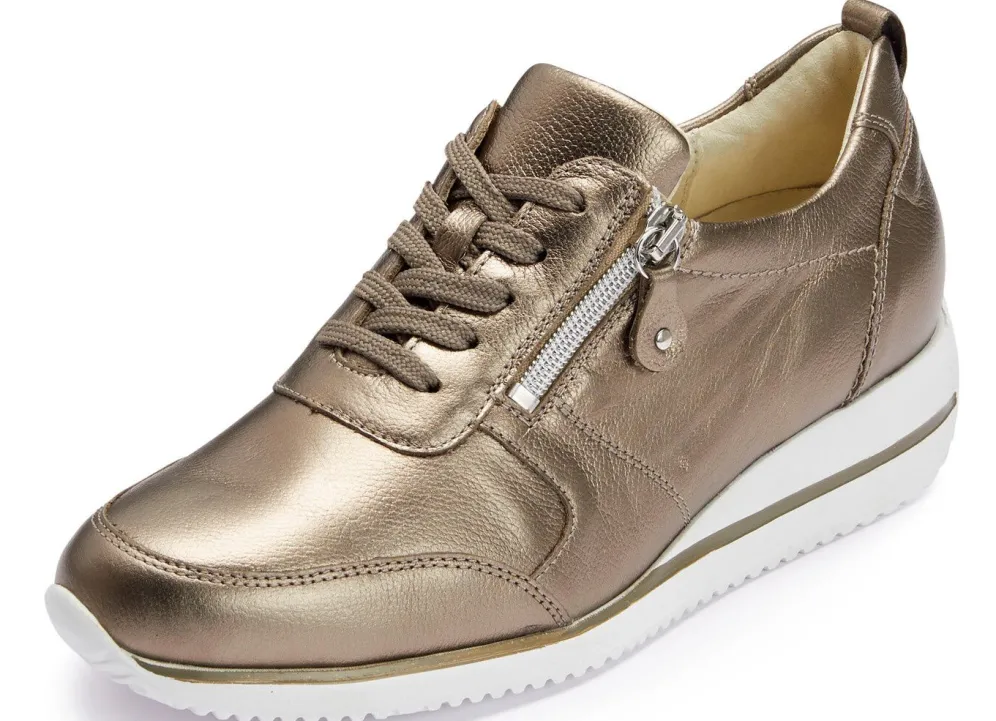 Sneaker aus bestem Nappaleder: in Weite H, Schnürung und seitlicher Reißverschluss, Quartier mit Lederfutter, herausnehmbares Lederfußbett, superleichte EVA-Riffelsohle sowie 25 mm Keilabsatz