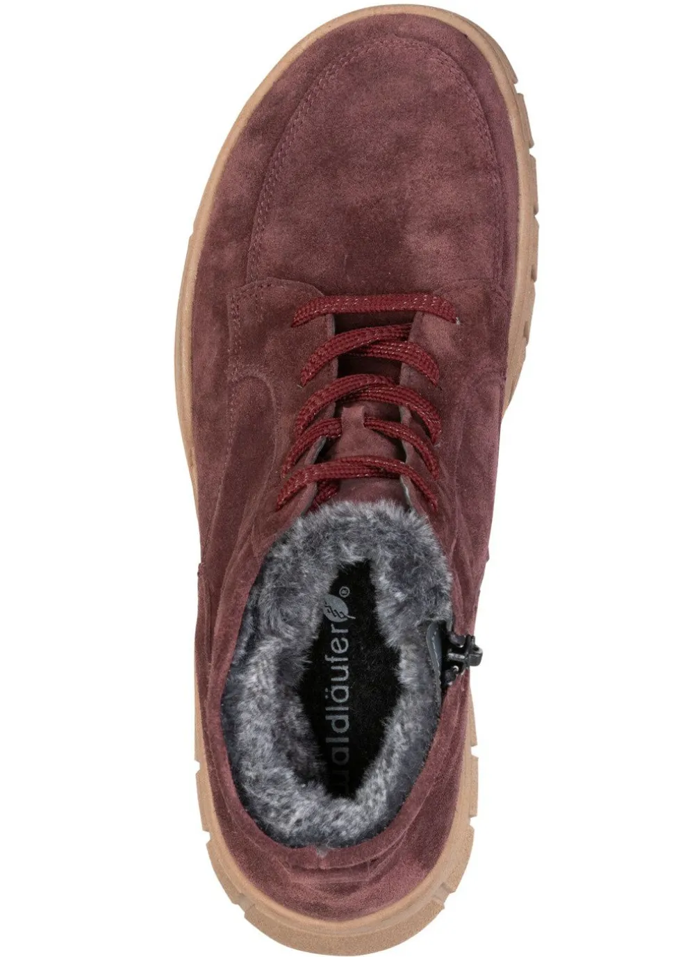 Stiefeletten aus weichem Veloursleder, mit Schnürung und praktischem Innenreißverschluss: Weite H, Warmfutter aus 100% Polyester, herausnehmbares Filz-Fußbett, leichte Synthetik-Luftpolster-Profilsohle sowie 15 mm Keilabsatz. Schafthöhe ca. 12 cm