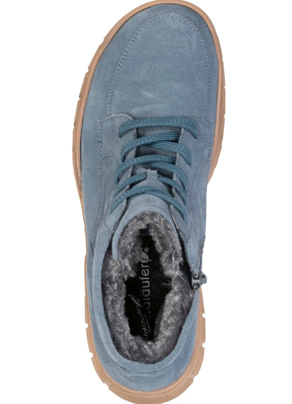 Stiefeletten aus weichem Veloursleder, mit Schnürung und praktischem Innenreißverschluss: Weite H, Warmfutter aus 100% Polyester, herausnehmbares Filz-Fußbett, leichte Synthetik-Luftpolster-Profilsohle sowie 15 mm Keilabsatz. Schafthöhe ca. 12 cm