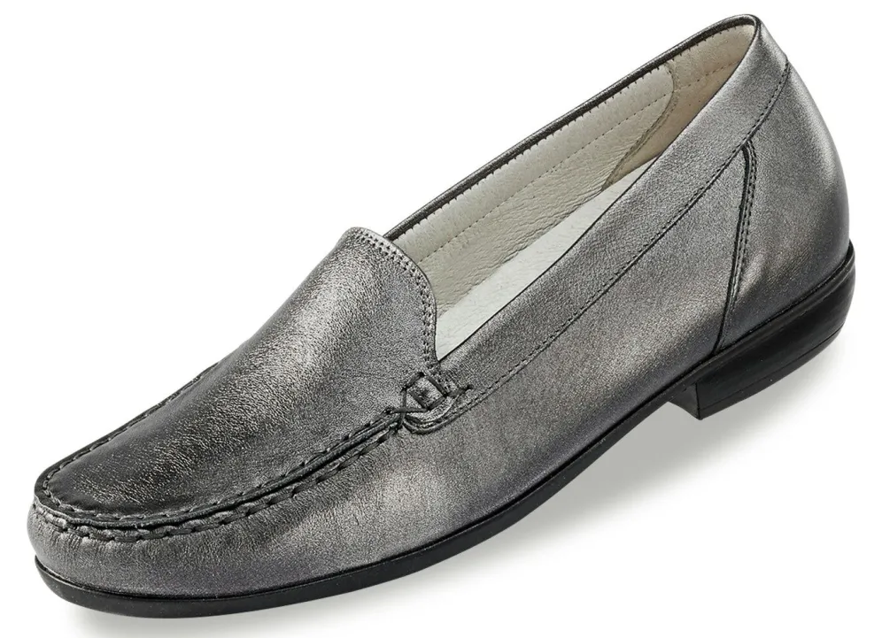 Mokassin-Slipper aus edlem Rind-Nappaleder: in Weite H, Lederfutter, herausnehmbares Lederfußbett, leichte TPS-Laufsohle sowie 15 mm Absatz