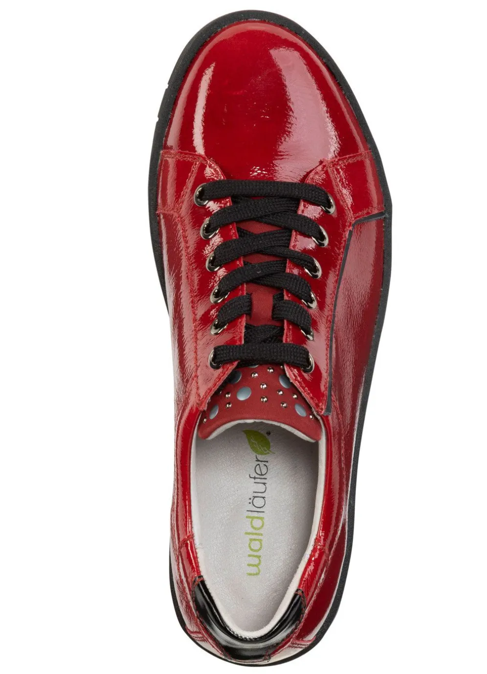 Schnürschuh aus weichem Knautschlackleder, mit dekorativer Nieten-Zunge: Weite H, Quartier mit Lederfutter, herausnehmbares Lederfußbett, leichte TR-Luftpolster-Profilsohle sowie 15 mm Keilabsatz