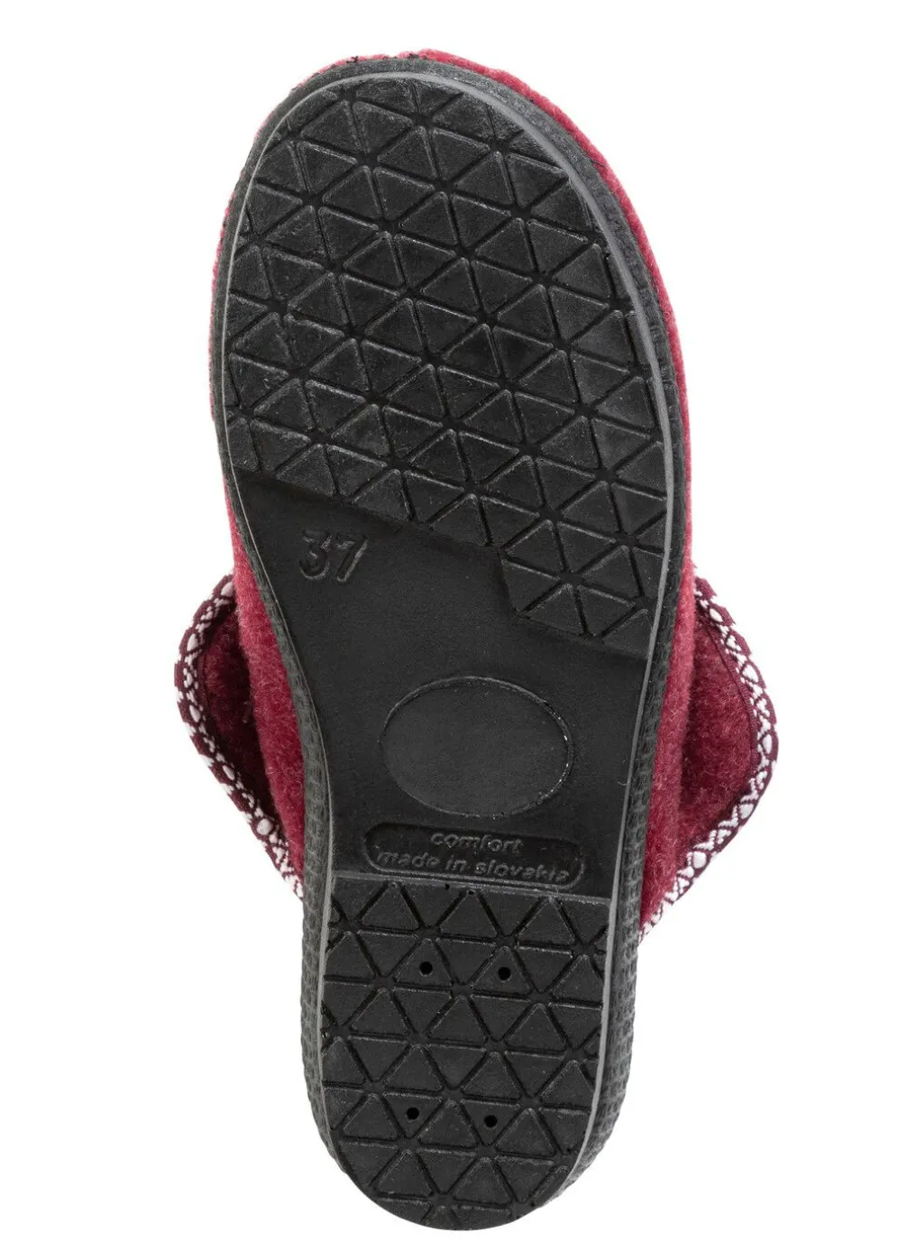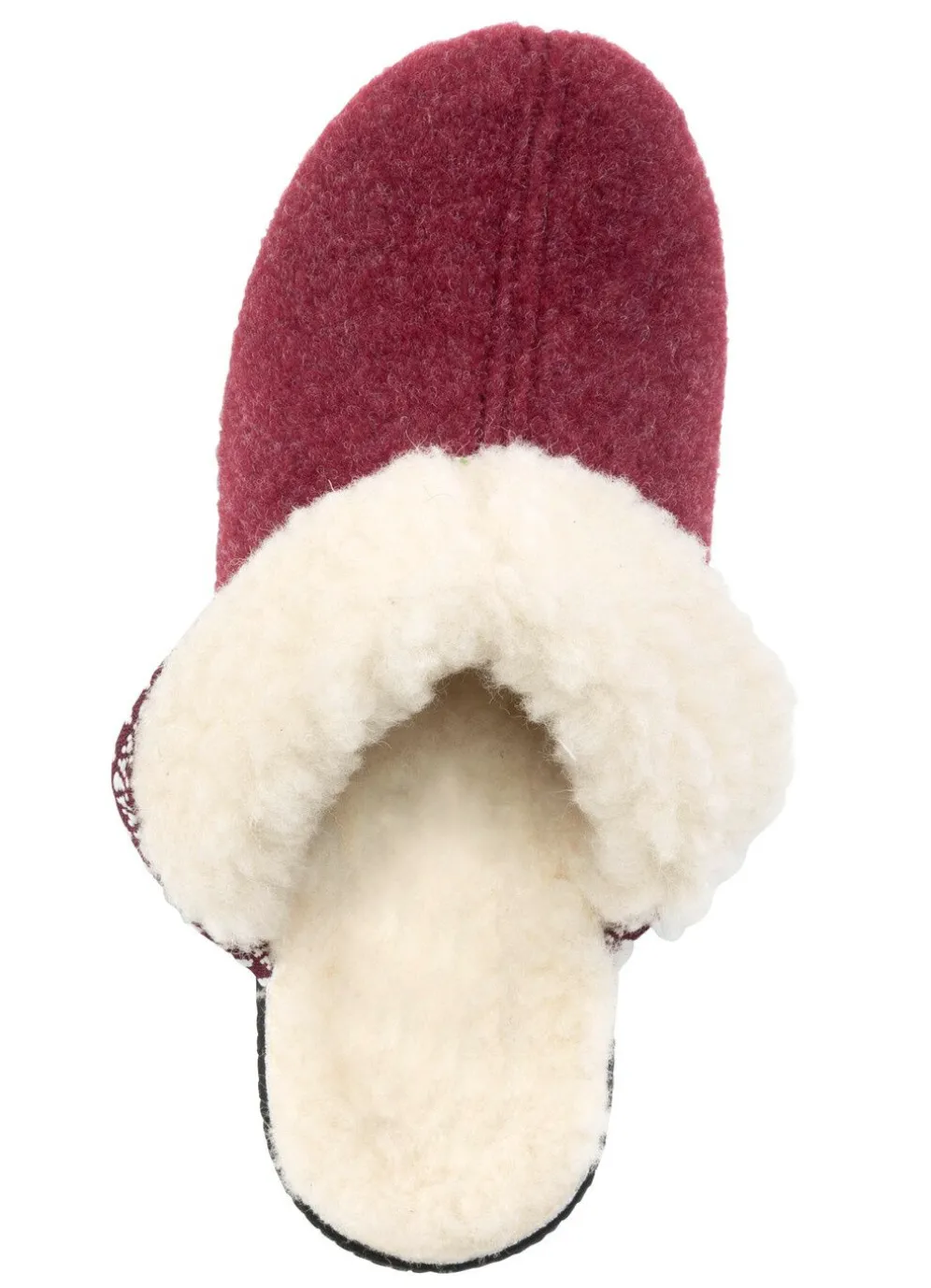 Hausschuhe aus weichem Filz: Weite H, Plüschkragen sowie Warmfutter und Decksohlenbezug aus reiner Wolle, superleichte PU-Laufsohle, 25 mm Keilabsatz