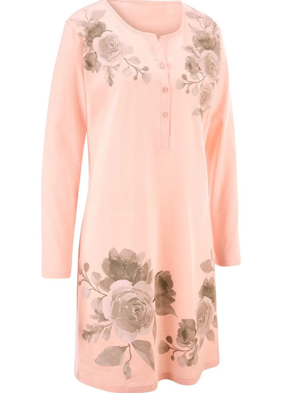 langer Knopfleiste, platzierten Drucken im Vorderteil sowie langen Ärmeln.