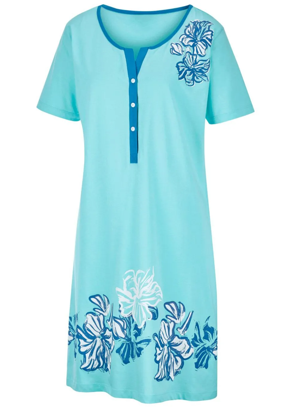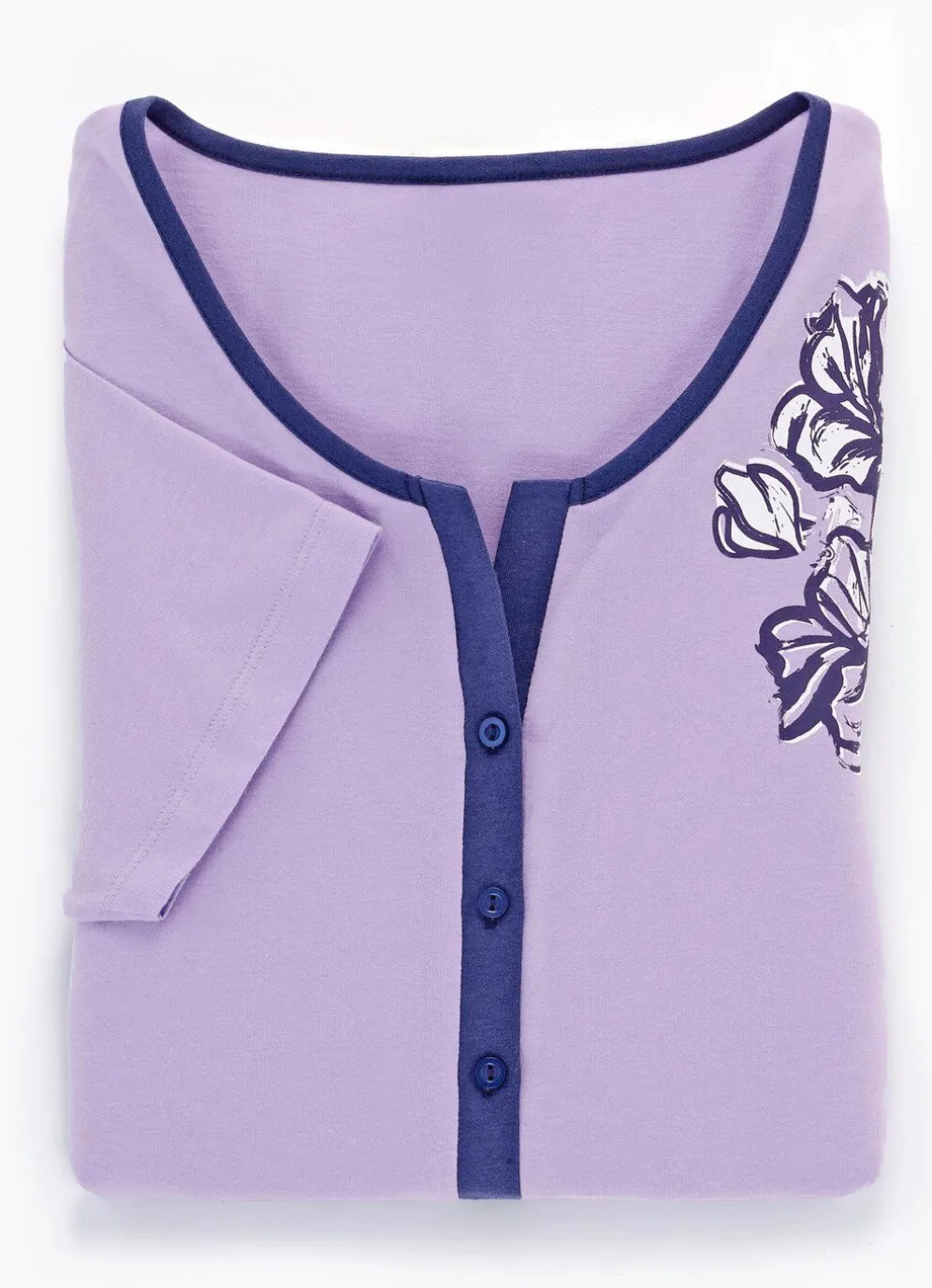 Knopfleiste, platzierten Drucken im Vorderteil sowie kurzen Ärmeln.