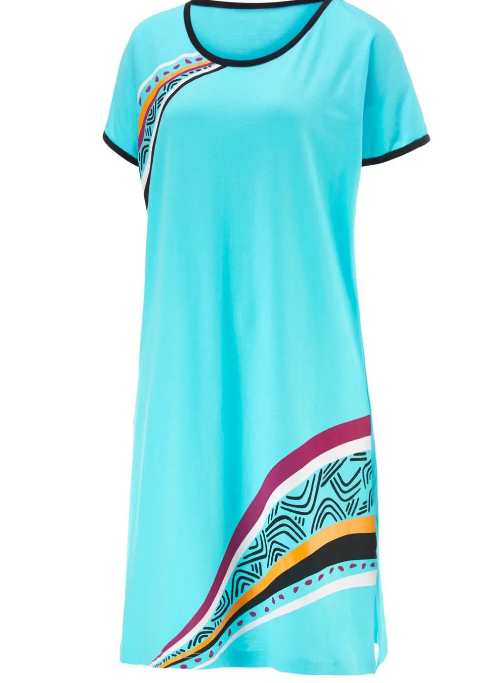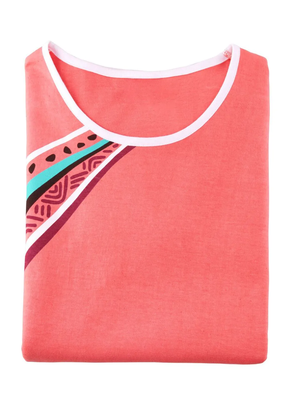 Kürzer geschnittene Nachthemden im günstigen Zweierpack: Kontrasteinfassung am Halsausschnitt