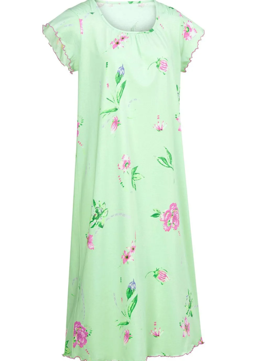 Im preiswerten Zweierpack erhalten Sie dieses wadenlange Nachthemd mit Schulterpasse, Raffungen sowie gebogten Abschlüssen an den kurzen Ärmeln und am Saum.