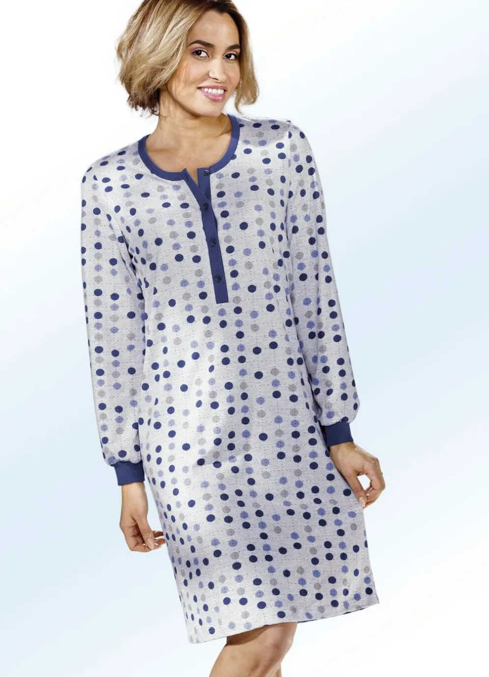 Knielanges Nachthemd im günstigen Zweierpack! Das Modell ist mit Kontrasteinfassungen, langer Knopfleiste sowie uni Bündchen an den langen Ärmeln ausgestattet.
