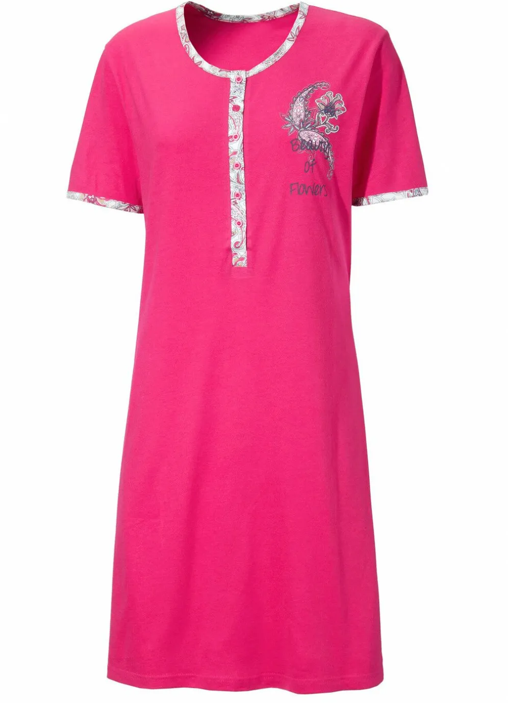Zauberhaftes, kürzer geschnittenes Nachthemd im vorteilhaften Zweierpack: Einfassungen, lange Knopfleiste, platzierter Druck mit Stickerei sowie kurze Ärmel.