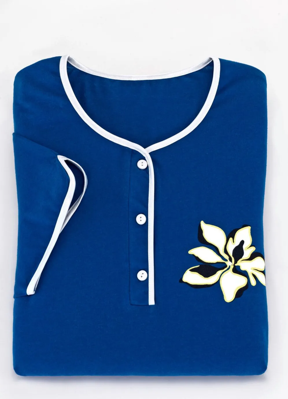 uni Nachthemd mit platziertem Druck, beide mit Satinbandeinfassung am Halsausschnitt, Knopfleiste