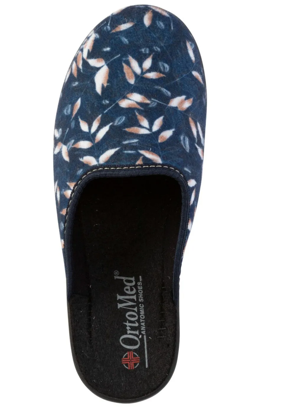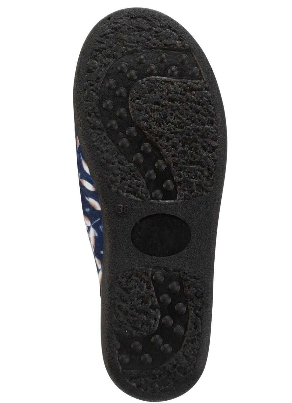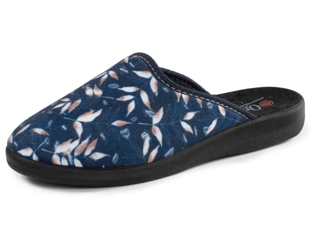 Pantoffel aus samtig weichem, bedrucktem Textilmaterial: Weite H, gepolstertes Futter und Fußbettbezug aus Textil, superleichte PU-Laufsohle sowie 15 mm Keilabsatz