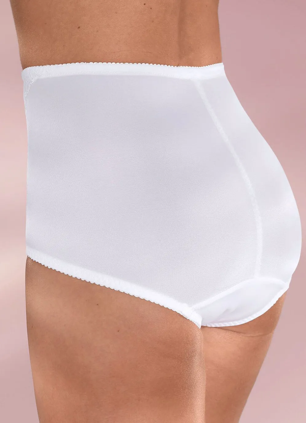 Weiße Miederhose von „Speidel“, mit elastischem Spitzeneinsatz im verstärkten Vorderteil sowie Baumwolleinlage im Schritt.