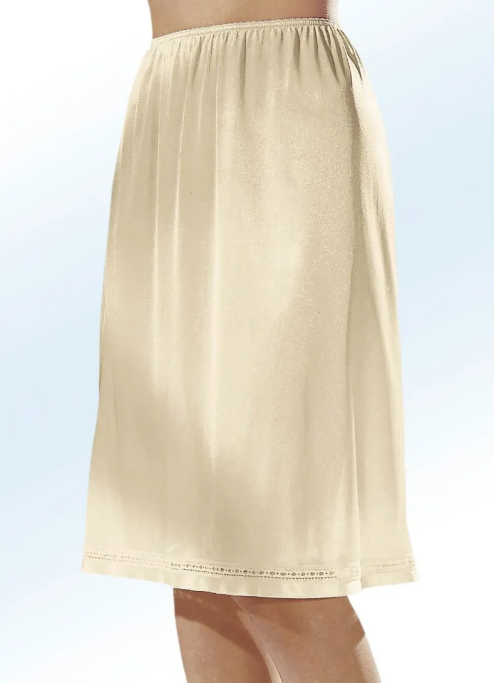 Halbrock mit Elastikbund sowie Hohlsaumrand am Abschluss. Länge ca. 63 cm, ab Gr. 46 ca. 65 cm.